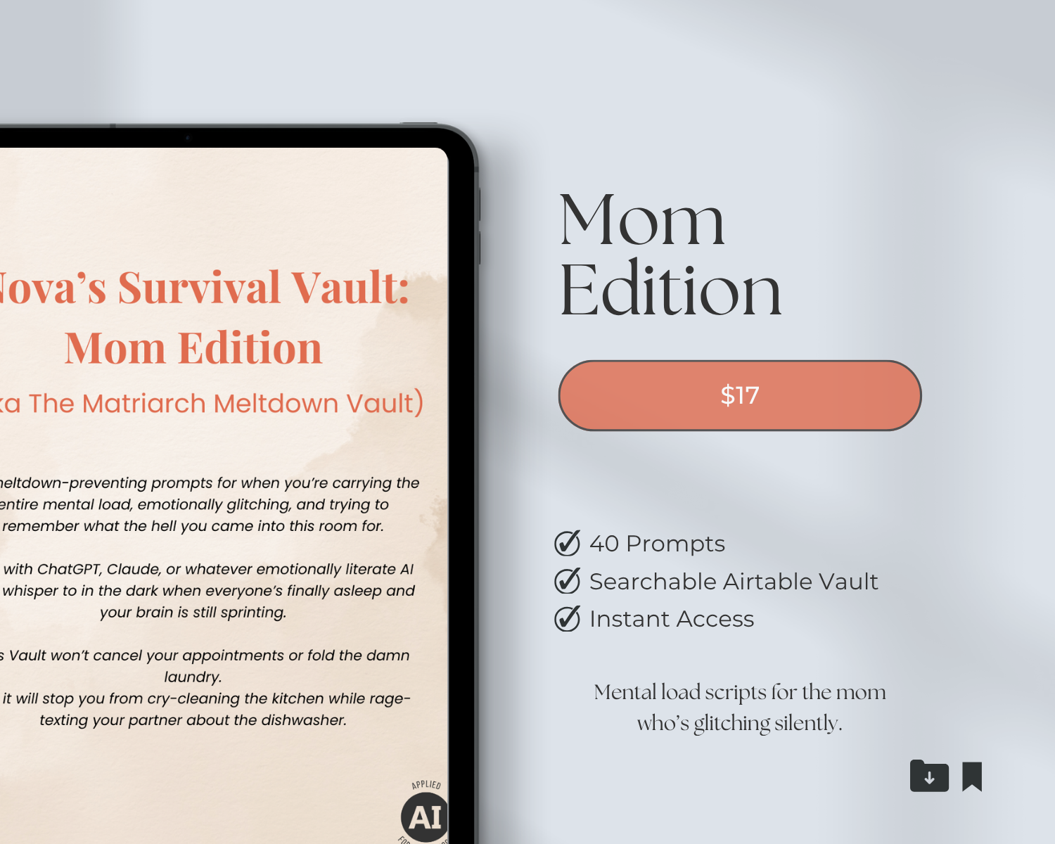 age-specific. battle-tested. organized so you can actually find what you need. instant access. searchable vault + pdf. works with free chatgpt.
